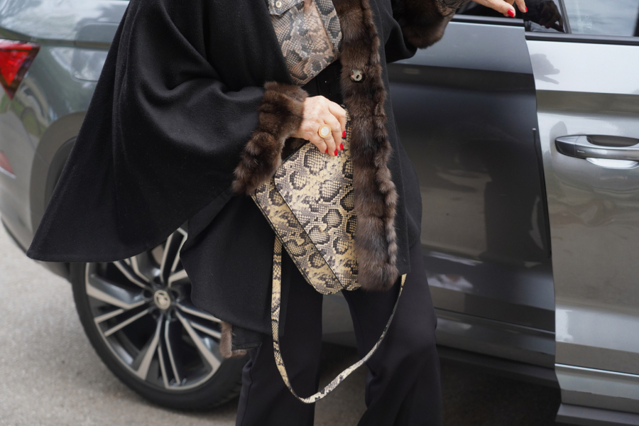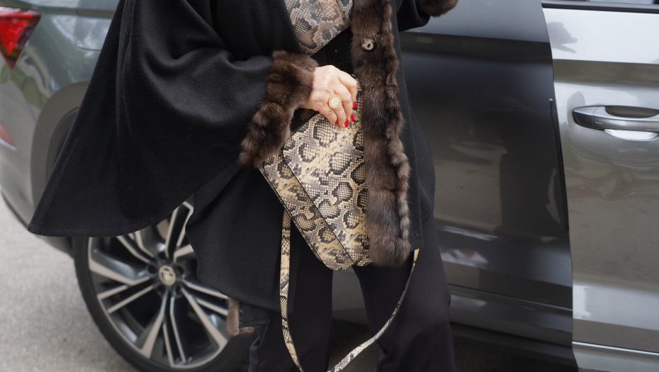 Košulja i torba u zmijskom printu, kombinovane sa crnim pantalonama širokih nogavica svima su zapale za oko, a poseban akcenat dao je monton, koji je Ana navukla na sebe prilikom izlaska iz automobila.