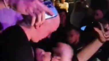 Naime, na društvenim mrežama osvanuo na snimak sa jednog njegovog nasutpa na kojem drži devojku za glavu i rukom joj "seče vrat" dok joj mikrofon nasilno drži na usta.
