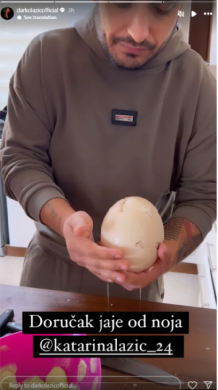Folker je svojoj supruzi spremao nojevo jaje, a Kaća je snimila i čitavu pripremu koja, koliko se može videti, nije protekla baš savršeno.