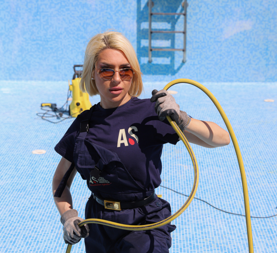 Prvi maj, koji mnogi obeležavaju uživanjem i odmaranjem, Jovana Jeremić odlučila je da provede radno. Zatekli smo je u dvorištu vile koju je dobila od izabranika, biznismena Dragana Stankovića usred čišćenja bazena i pomaganja majstorima oko finalnih radova na kući.