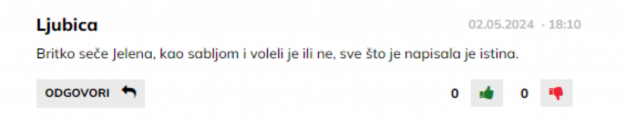 - Britko seče Jelena, kao sabljom, i voleli je ili ne, sve što je napisala je istina", "Bravo Jelena!" - samo su neki od komentara.