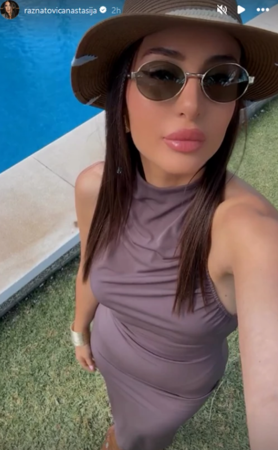 Nakon što je snimila svoj stajling pored bazena, Anastasija je objavila fotografiju sa sestrom Nemanje Gudelja, Vanjom, njegovom majkom Oliverom i Dušanom Erdeljom.