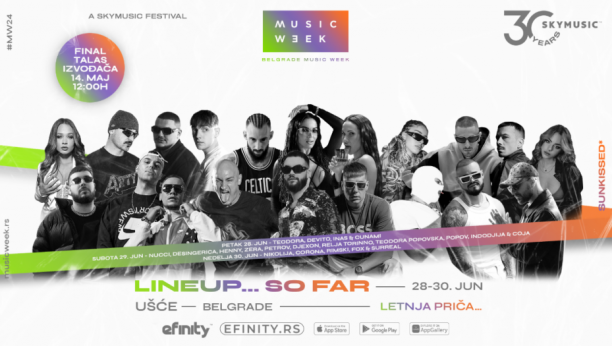 Belgrade Music Week održava se od 28. do 30. JUNA na UŠĆU, a u svom šestom izdanju okupiće više od 25 IZVOĐAČA popularne muzike iz ČITAVOG REGIONA. Ulaznice za ovaj muzičko-scenski spektakl dostupne su putem besplatne aplikacije eFinity, na sajtu efinity.rs, na blagajnama Beogradske arene i Doma omladine Beograda (DOB), u Tržnom centru Rajićeva (I sprat) i na više od 1.000 Mojkiosk trafika širom Srbije.