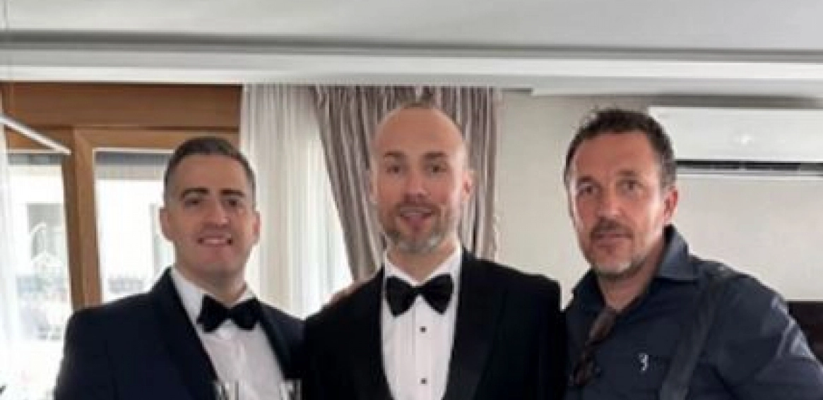 Sofronijević je za ovu priliku odabrao elegantno crno odelo sa prslukom i leptir mašnom. On se uslikao sa prijateljem, te pokazao kako nazdravljaju pre odlaska po mladu.