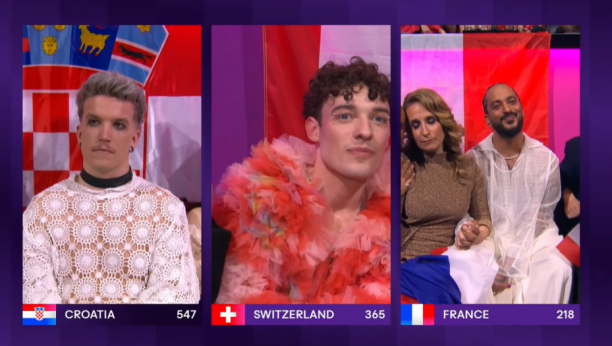 Gotovo je glasanje žirija, a sada sledi publika. Švajcarska ubedljivo vodi, Francuska je na drugom mestu, a Hrvatska je na trećem mestu.
