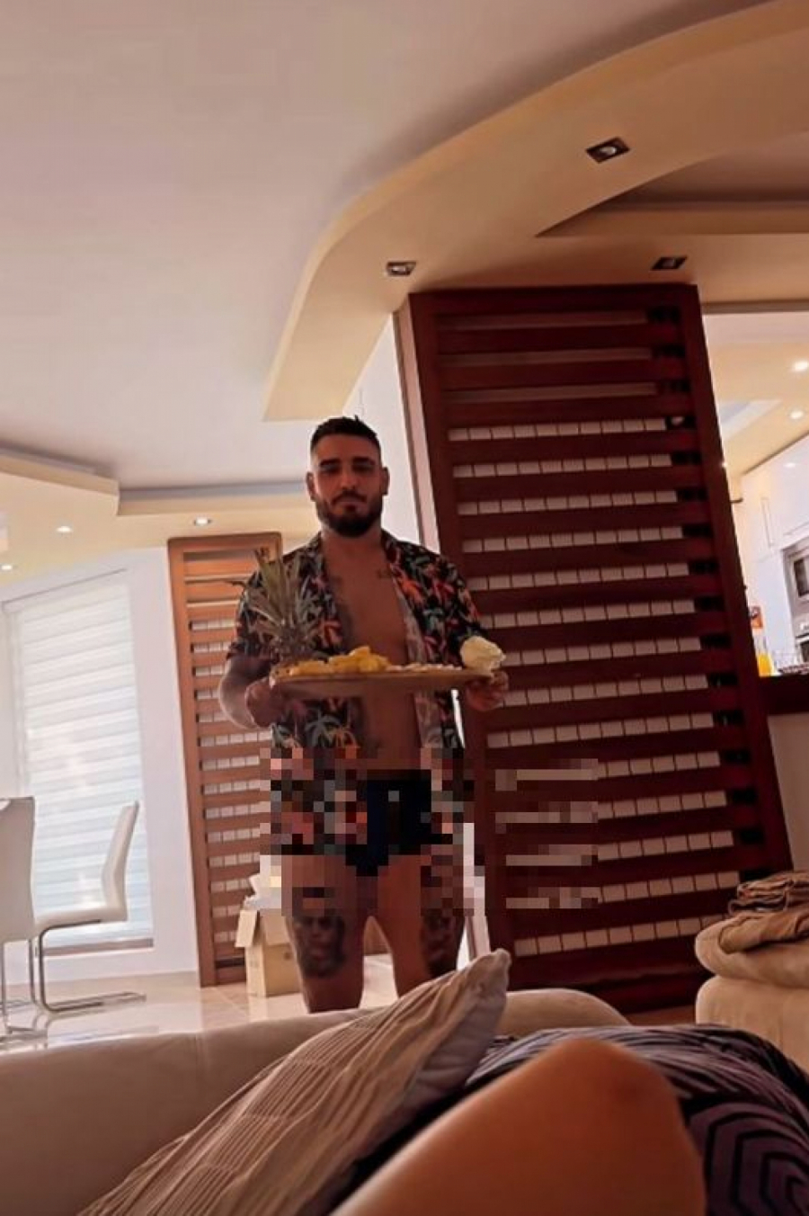 Na snimku se vidi kako joj u donjem vešu donosi voće, uključujući ananas i banane, kako bi joj obezbedio neophodne vitamine tokom trudnoće. Poseban detalj je bila i bela ruža.