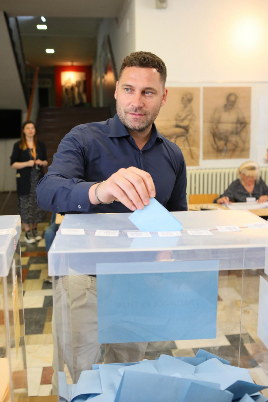 Naime, fudbaler se pojavio u svom, kao i uvek, sređenom i elegantnom izdanju. Bio je u plavoj košulji i pantalonama, a biračko mesto posetio je sam.