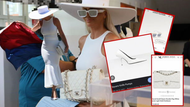 U svom stilu, Jelena se pojavila u beloj haljini sa kombinacijom plave i crvene, koje čine i srpsku zastavu, dok je na glavi je imala veliki šešir i bele naočare.