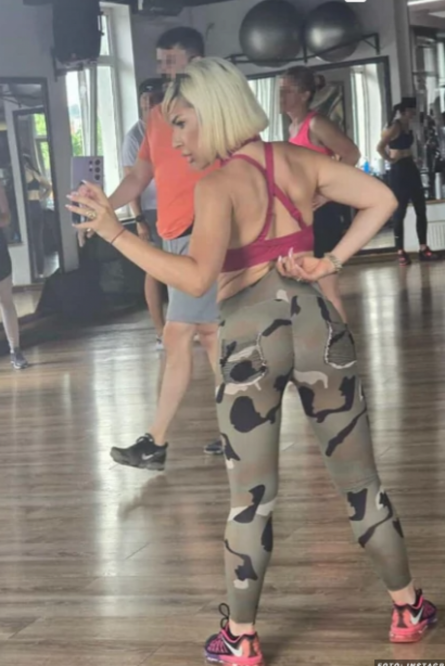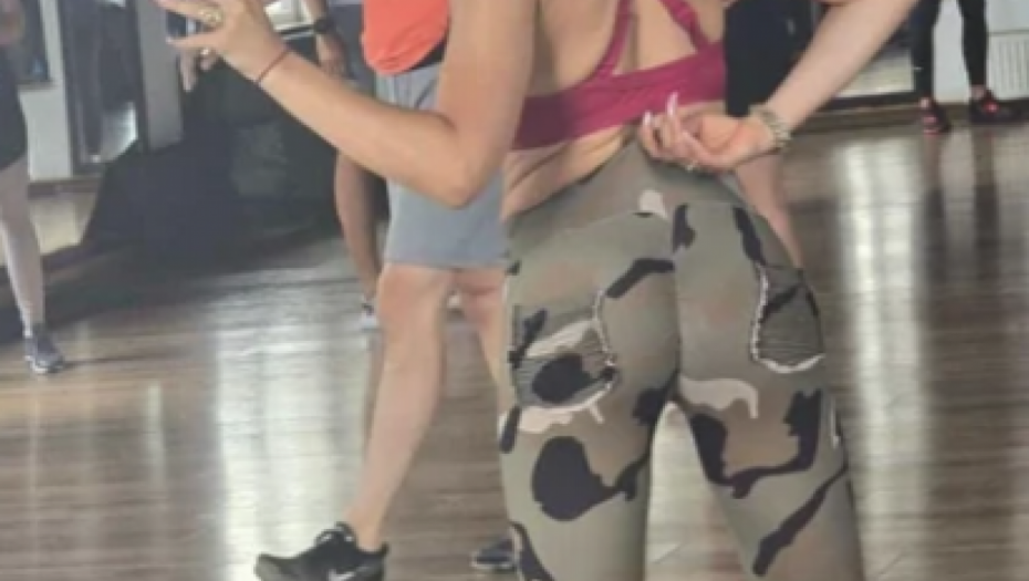 Naime, ona je povukla helanke i time pokazala svoju istreniranu zadnjicu, a roze top majica istakla je njen stomak kao i dekolte.
