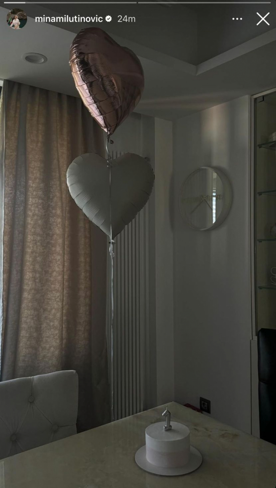 Mina je pokazala i kako je par ukrasio dom. Vide se baloni, torta, a sve je u nežno roze i beloj boji.