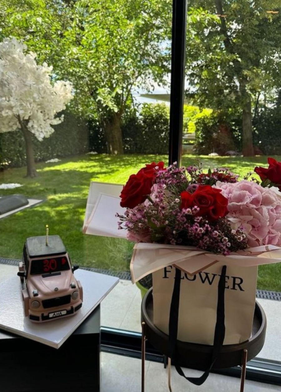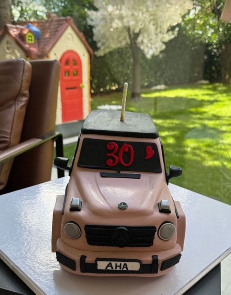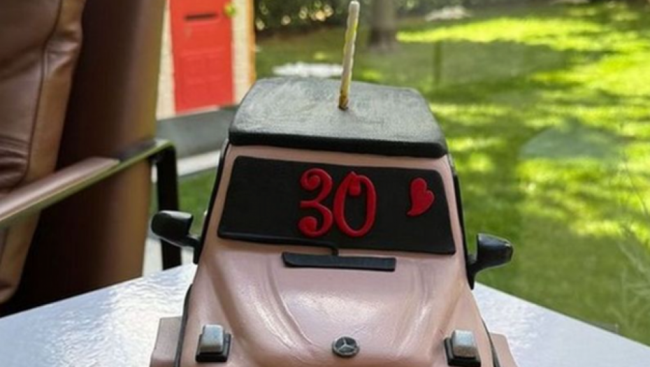 Reč je o torti u obliku njenog roze BMW džipa, sa tablicama na kojima piše "Ana" i brojem 30 na šoferšajbni, dok je svećica za želju postavljena na krovu automobila. Uz tortu, dobila je i prelep buket cveća.