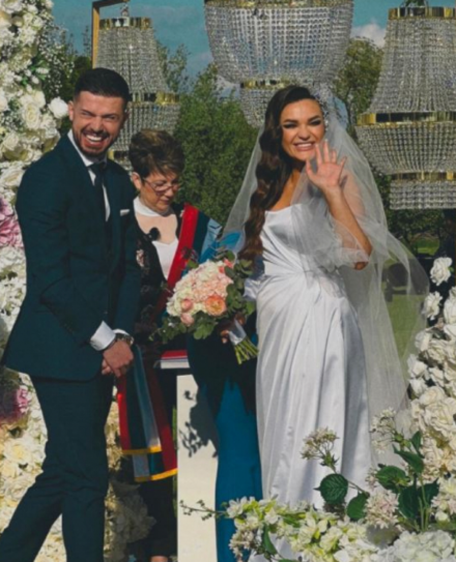 Mladenci su stigli ispred, a svi su oduševljeno gledali u pevačicu koja se pojavila u venčanici kao iz bajke, a u pozadini su se čuli trubači.