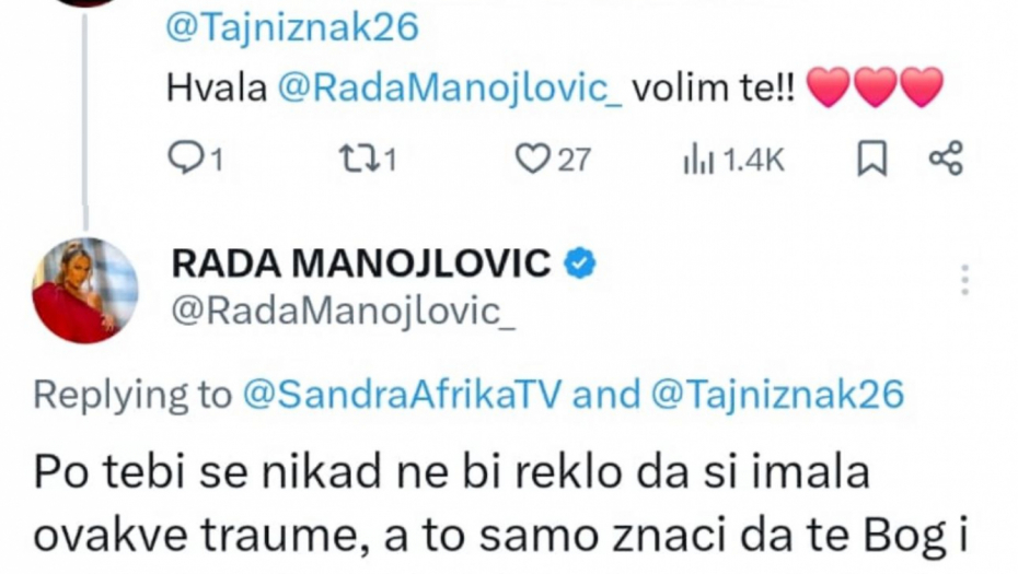 Sada isečak iz tog podkasta kruži mrežama a komentara ispod klipova svakoga dana ima sve više i više, a veliku podršku Sandri je dala i Rada Manojlović.