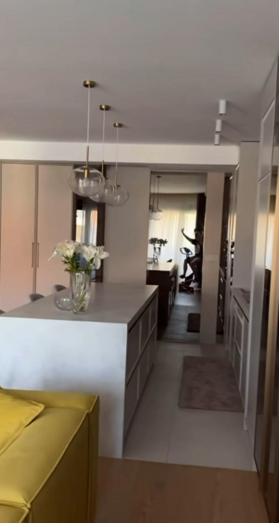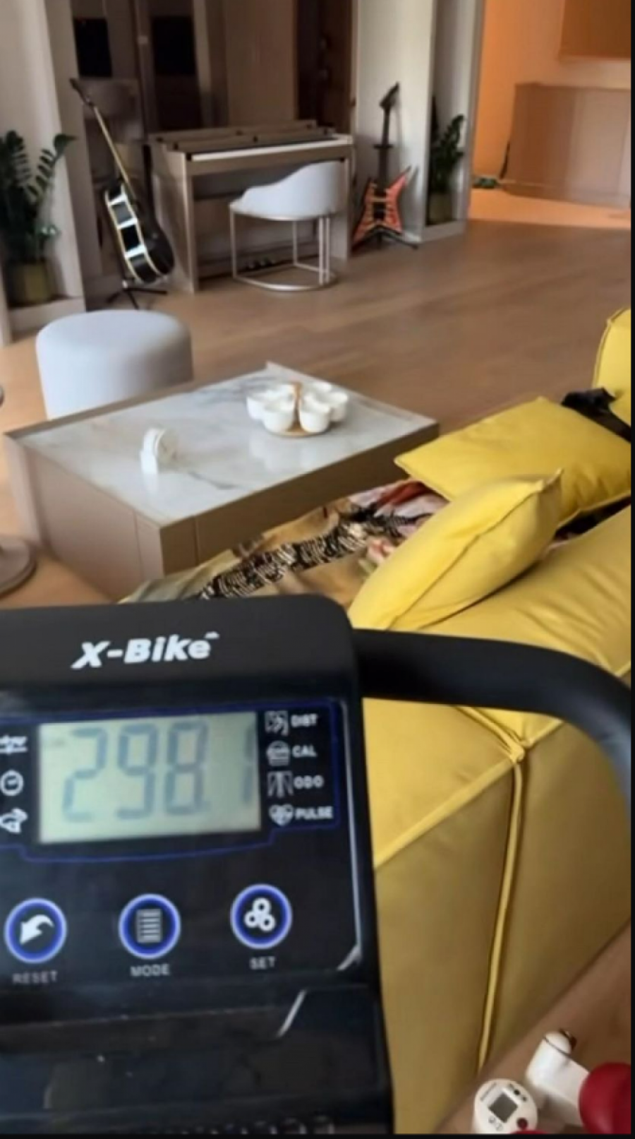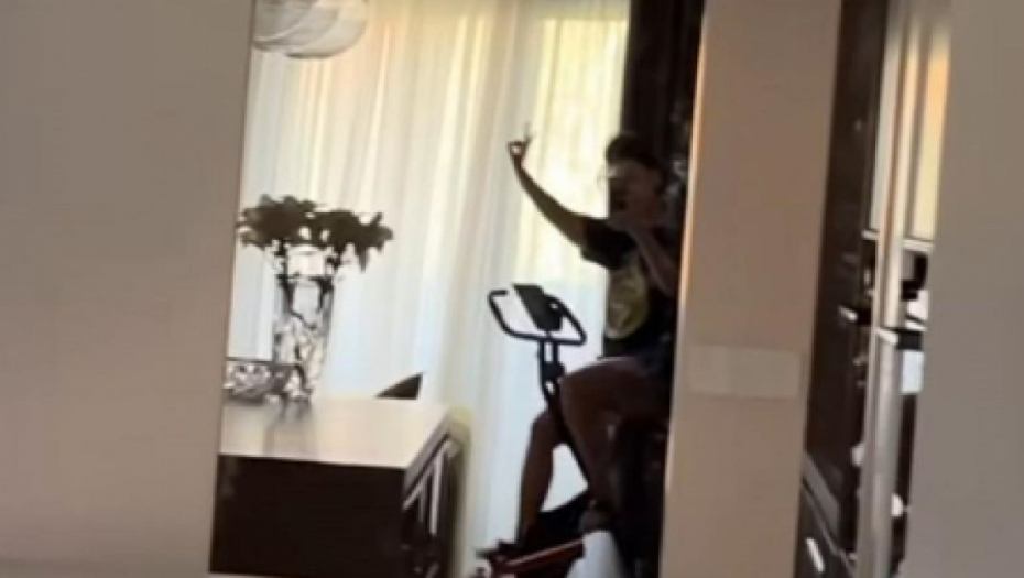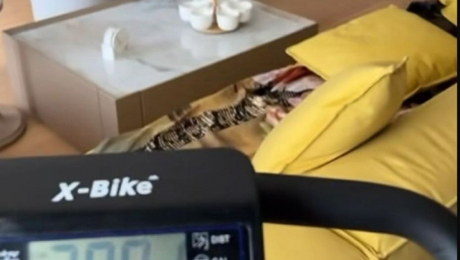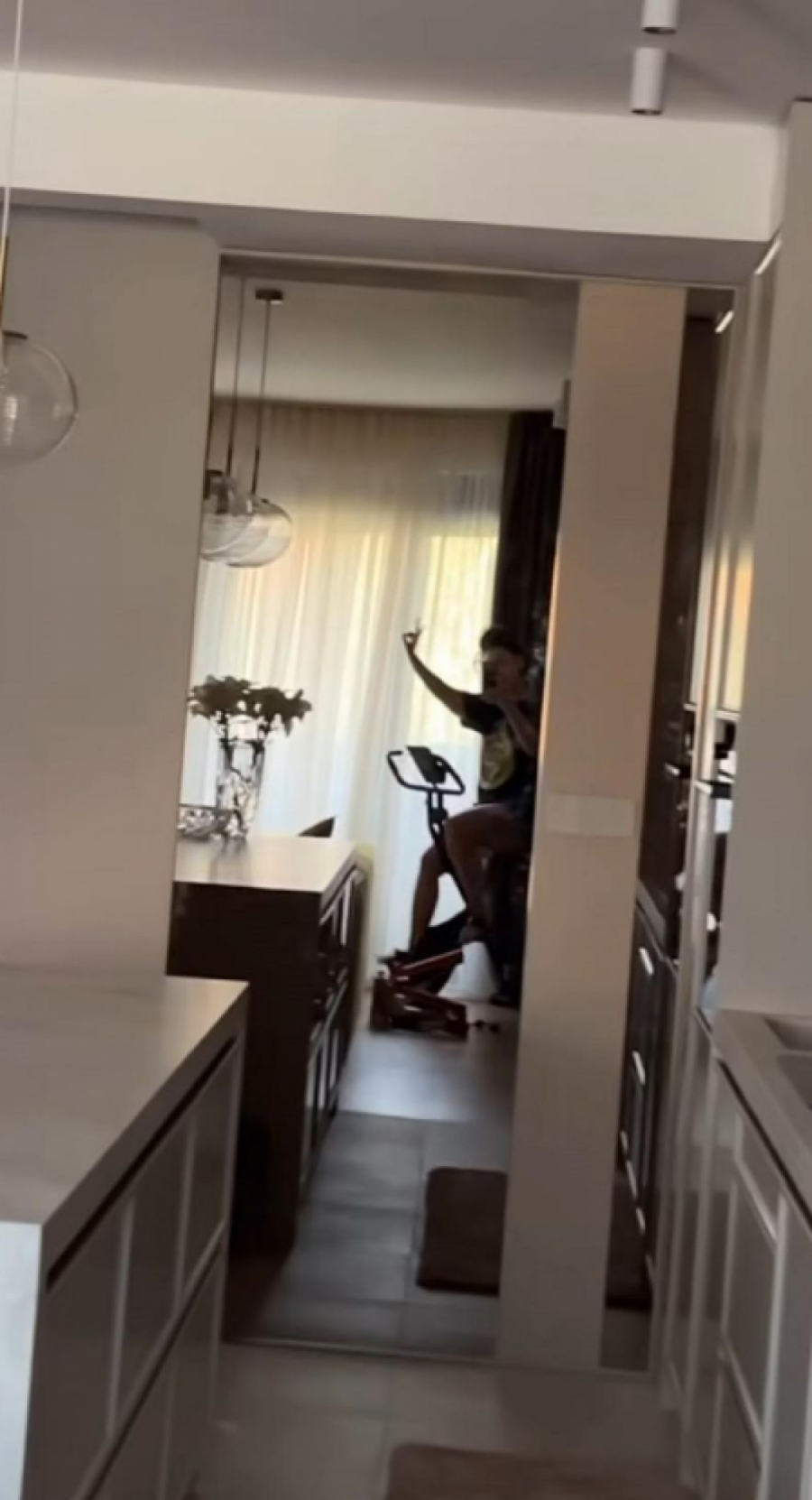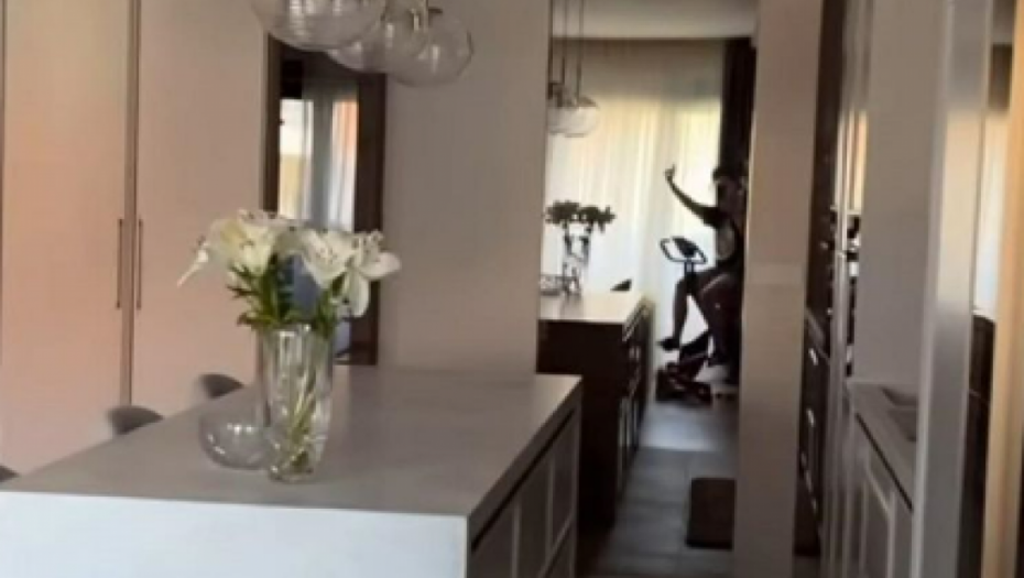 Dok je trenirala na kućnom biciklu, pevačica se snimala za Instagram i svojim pratiocima otkrila deo svog novog doma - dnevni boravak i kuhinju.