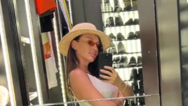 Kaća se slikala u ogledalu luksuznog garderobera, noseći usku majicu i suknju sa šlicem koji je savršeno istakao njen trudnički stomak što je mnogima privuklo pažnju.