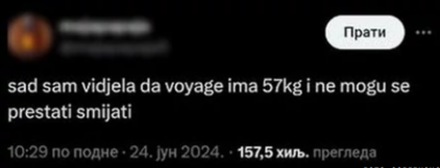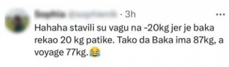 "Sad sam videla da Vojaž ima 57kg i ne mogu se prestati smejati", "57, ali to je bez utoka i kajli...sa njima izađe na 57.014", "Hahaha stavili su vagu na -20 kilograma, jer je Baka rekao 20 kg patike. Tako da Baka ima 87 kg, a Vojaž 77 kilograma" - bili su neki od komentara zbog kojih smo pozvali Vojaža.