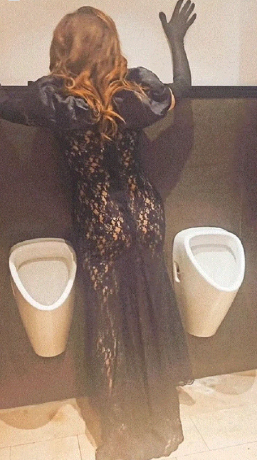 GLUMICA U 53. GODINI U PROVIDNOJ HALJINI OD ČIPKE! Provokativno pozirala u muškom toaletu, mreže gore zbog njenog poteza!