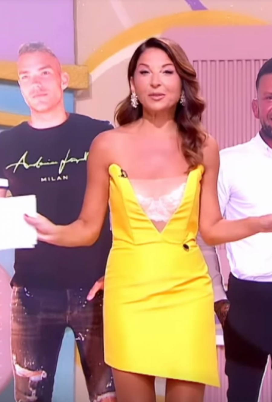Za ovu priliku, Sanja je izabrala kratku žutu haljinu s dubokim dekolteom koji je otkrio njen čipkasti brushalter.