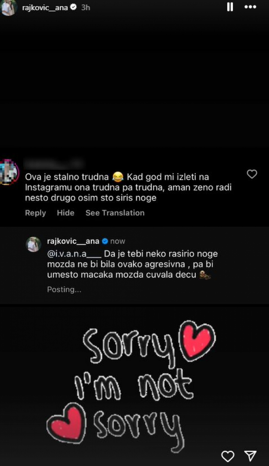 Ovom objavom, Ana je želela da ukaže na nepristojno ponašanje na društvenim mrežama i apeluje na korisnike da budu ljubazniji i pažljiviji u svojim komentarima.
