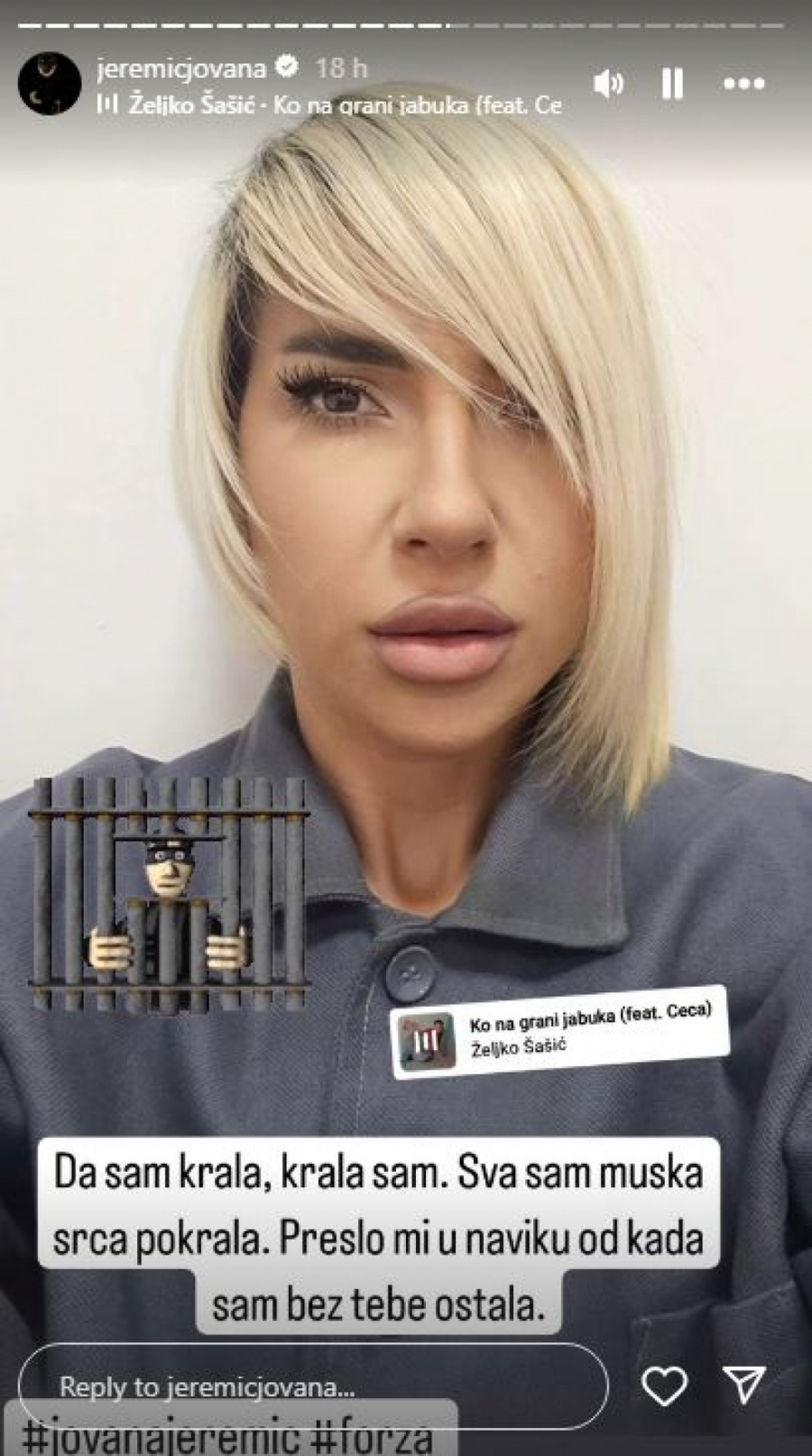 - Da sam krala, krala sam. Sva sam muška srca pokrala. Prešlo mi u naviku od kada sam bez tebe ostala - napisala je Jovana u okviru slike.