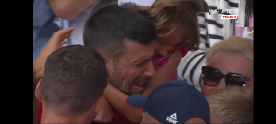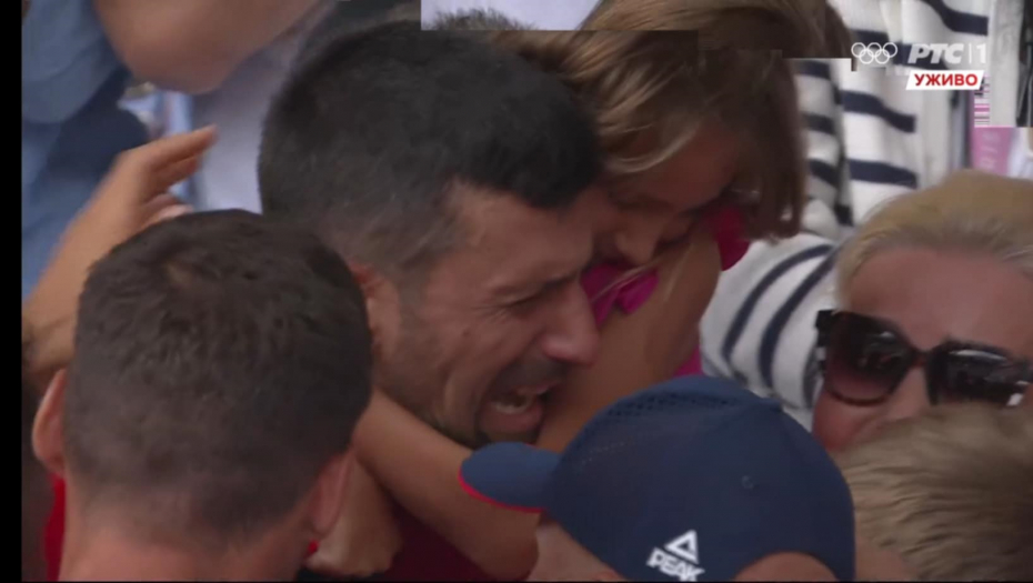 Nole je potom otrčao do svog boksa gde se nalazi njegova porodica. Upao je u zagrljaj ćerki Tari i njoj počeo da plače na ramenima.