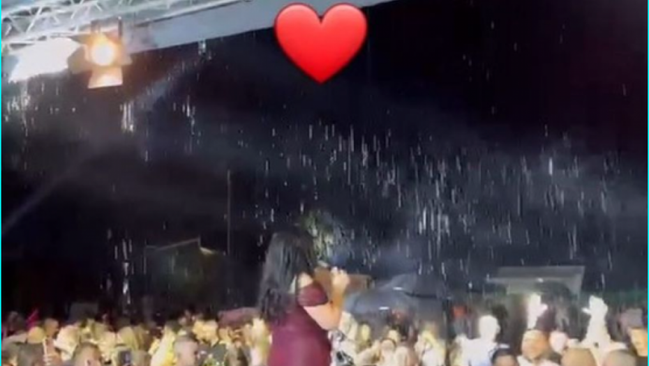 Pevačica je sišla sa bine koja je imala nastrešnicu, pa ušla među publiku te nastavila da peva sa njima, kisnući.