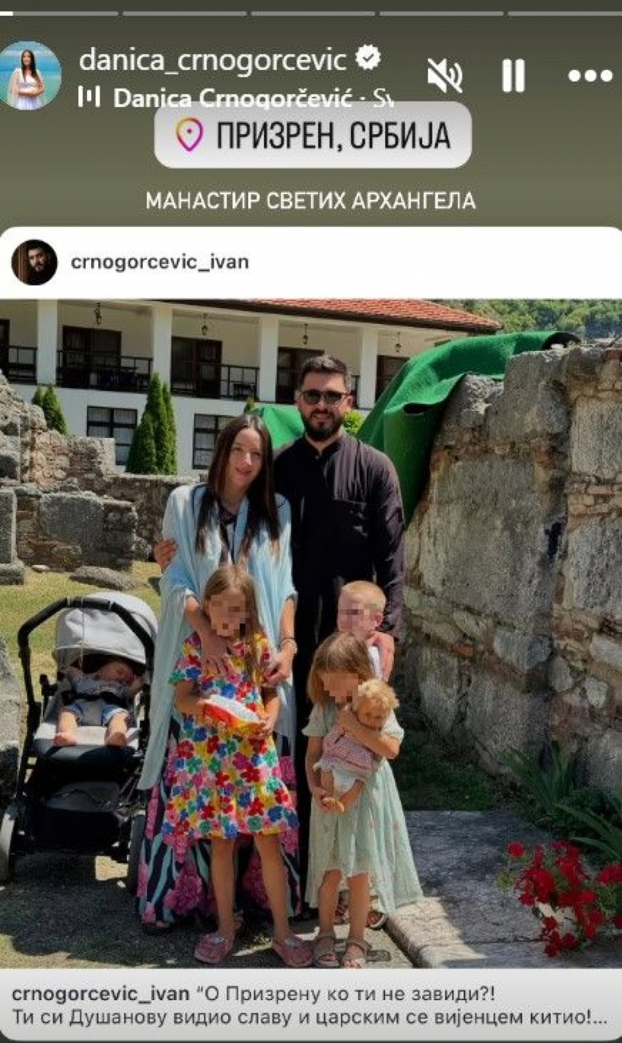 - Pećka patrijaršija, nekoliko dana prevedenih na našem parčetu neba, neprocenjivo. Kosovo i Metohija - napisala je Danica ispod snimka, koji je objavila na svom Instagram profilu.