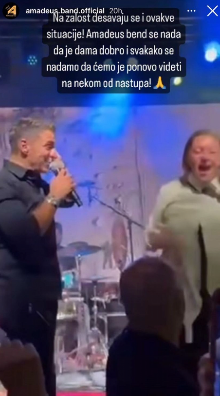 - Nažalost, dešavaju se i ovakve situacije! Amadeus bend se nada da je dama dobro i svakako se nadamo da ćemo je ponovo videti na nekom od nastupa - poručili su momci iz Amadeus benda na svom Instagram profilu.