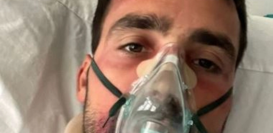 Na slici je očigledno da glumac ima povrede glave i modrice po celom licu, ali i kragnu za vrat, te da je priključen na kiseonik.