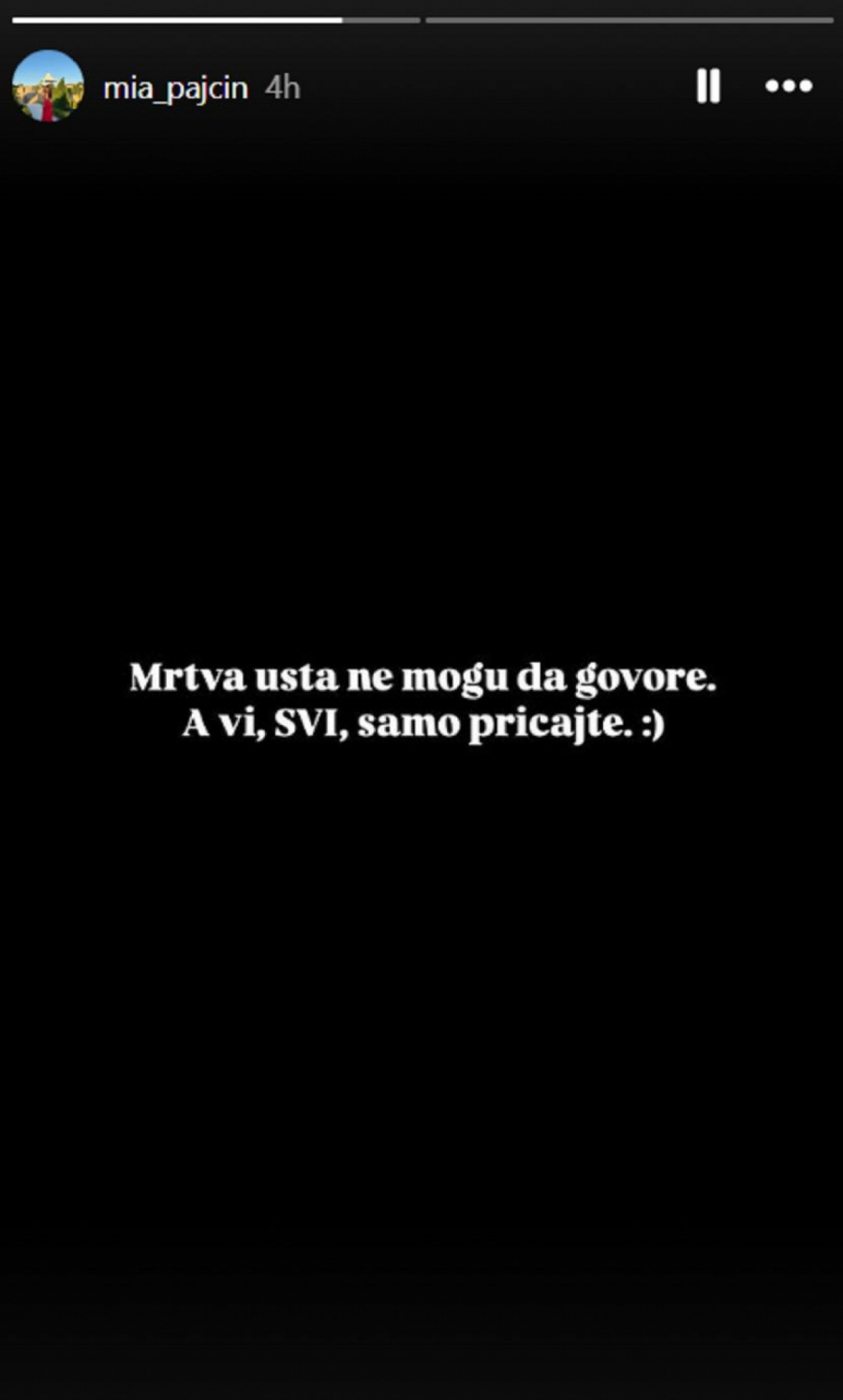 - Mrtva usta ne mogu da govore, a vi svi samo pričajte - napisala je Mia, a zatim je podelila isečak iz emisije u kojoj je gostovala pokojna pevačica.