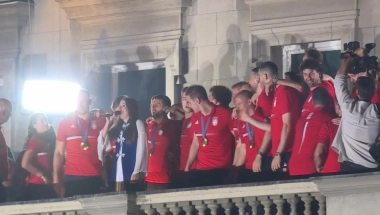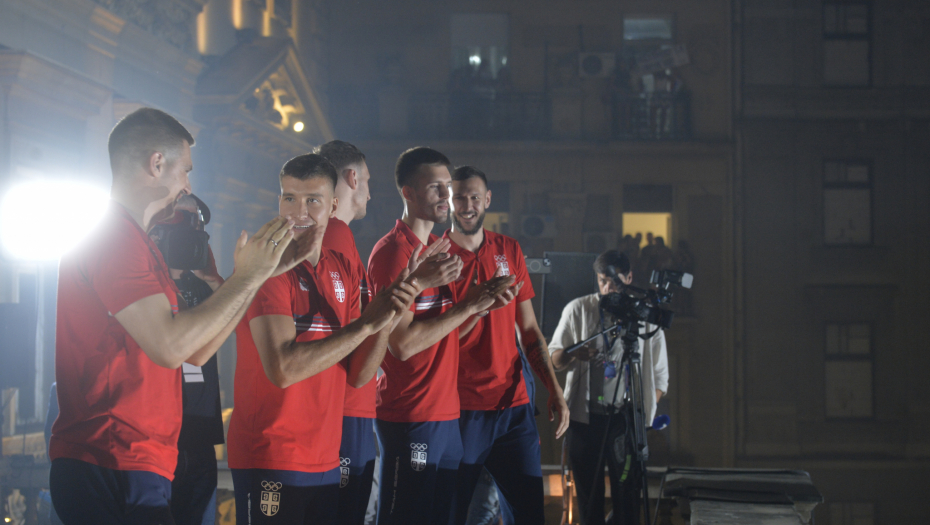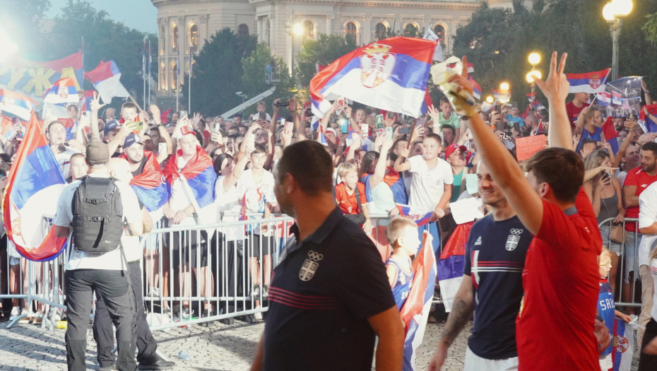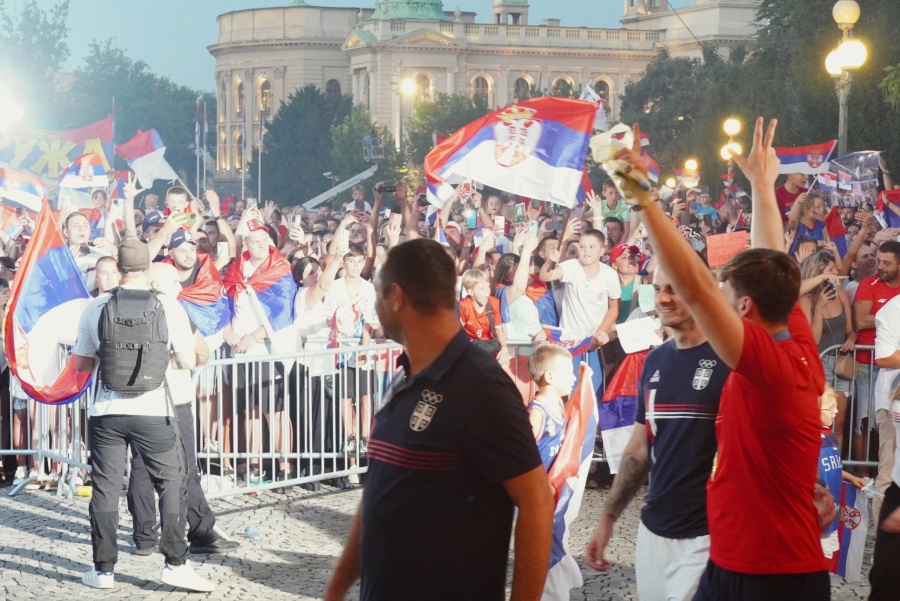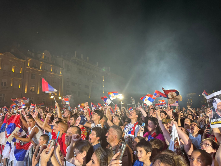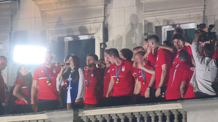 Građani Srbije dočekali su večeras svoje sportiste na balkonu Starog dvora, a ogromna broj ljudi pristiže u svakom trenutku.