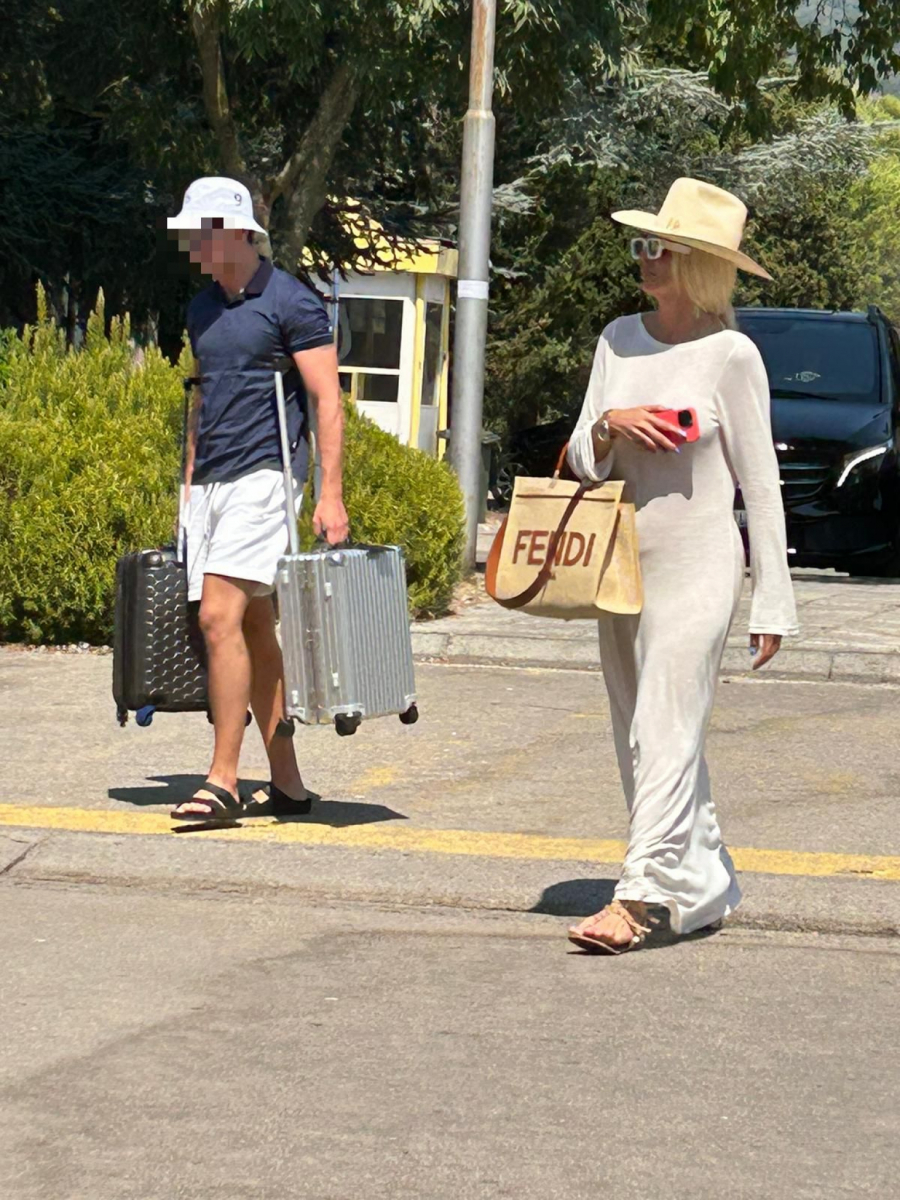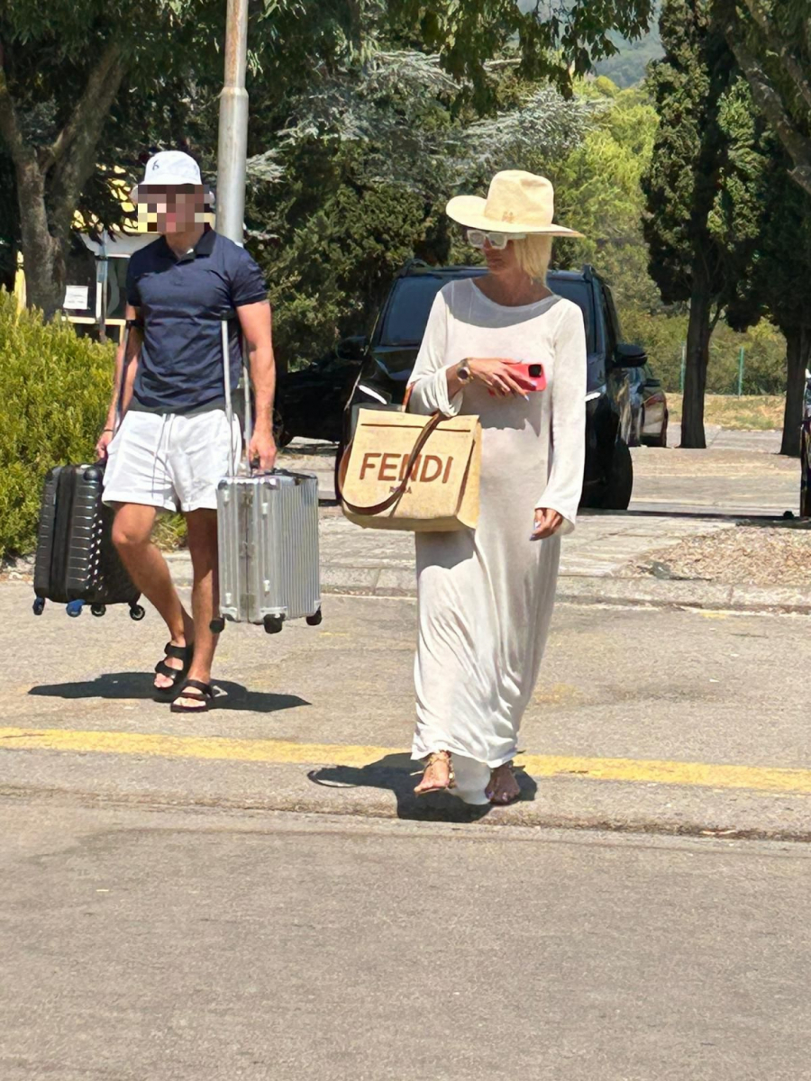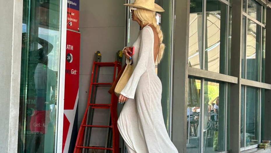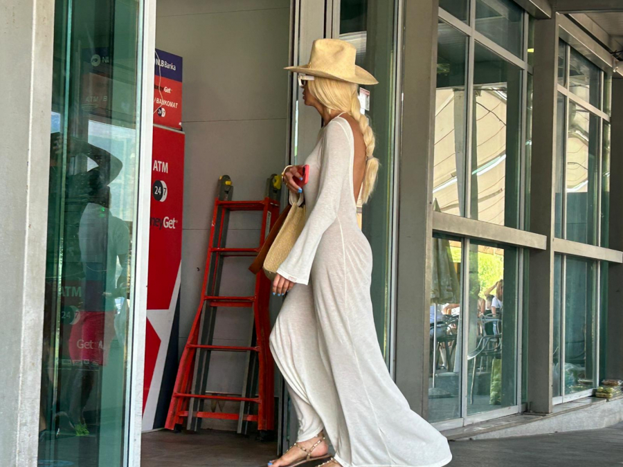 Jelena je bila ležerno obučena, bez trunke šminke, na sebi je imala dugu, belu haljinu, a društvo joj je pravio menadžer i prijatelj Zoran Birtašević.