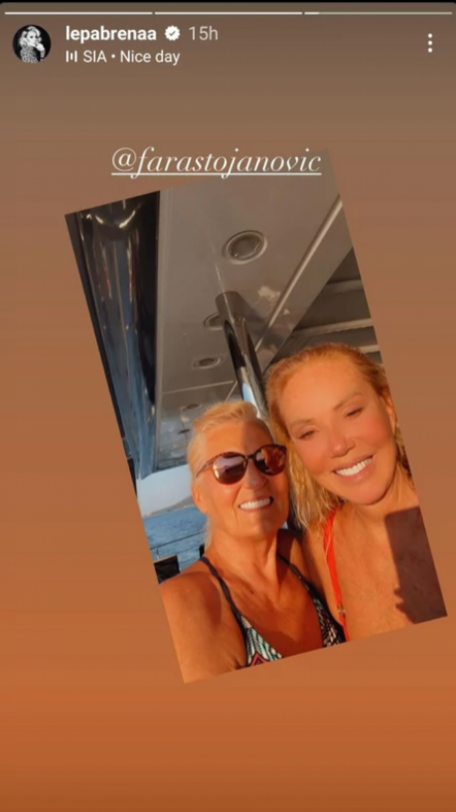 Brena je na svom Instagram nalogu podelila fotografiju sa sestrom, na kojoj su obe srećne i nasmejane. Fara je nosila plavi kupaći kostim sa šarenim uzorcima, dok je Brena bila obučena u koralnocrveni model.