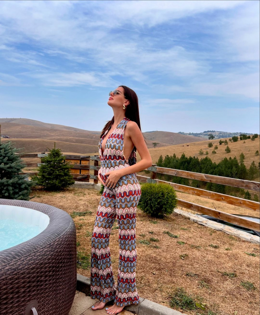 Jovana je pozirala u šarenom kombinezonu, duboki dekolte bio je veoma izražen, a trudnički stomak je bio u prvom planu.