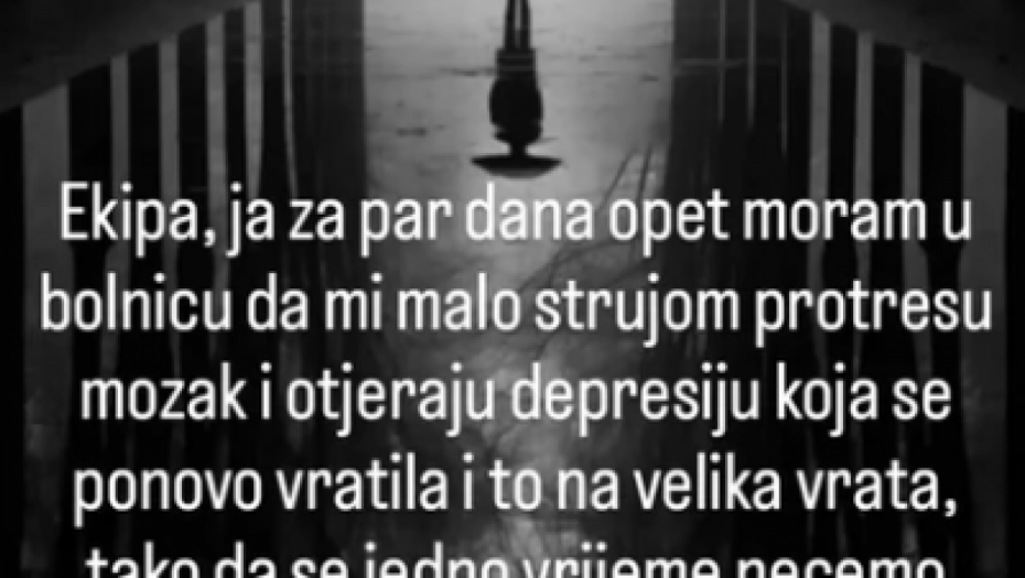 - Ekipa, ja za par dana opet moram u bolnicu da mi malo strujom protresu mozak i oteraju depresiju koja se ponovo vratila, i to na velika vrata - napisao je on.