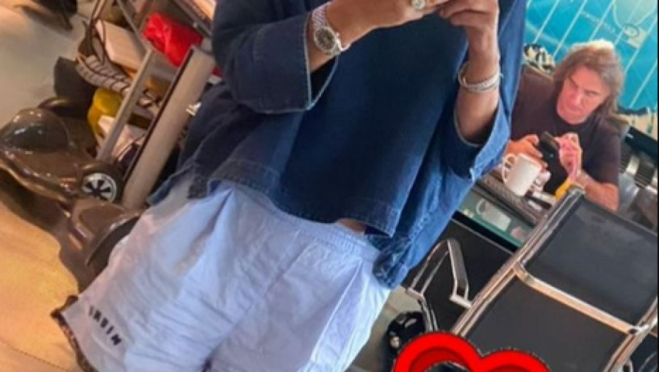 Na slici, u potpuno ležernoj kombinaciji i bez šminke, Milica se uslikala u ogledalu, dok se u pozadini vidi njen suprug Željko kako sedi za radnim stolom.