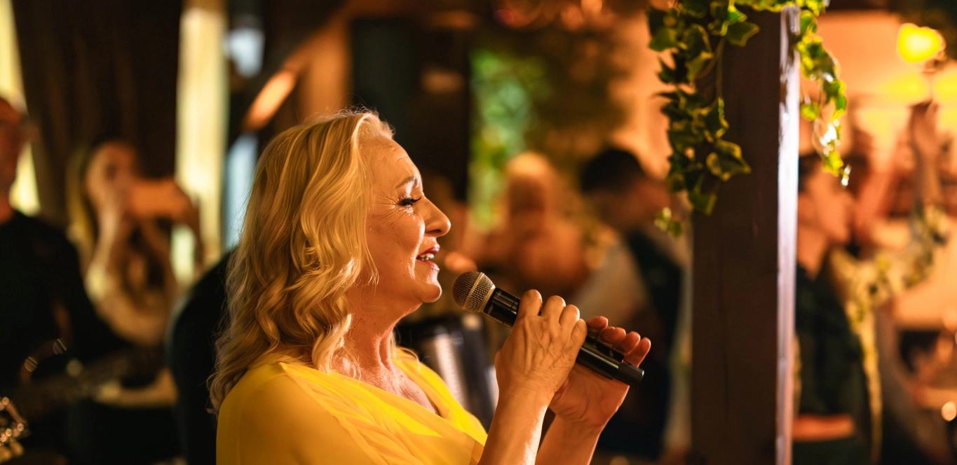 Tip top skockana u dugačkoj žutoj haljini,Vesna je sinoć izašla pred publiku u svom starom prepoznatljivom stilu i kada je uzela mikrofon u ruke, nije ga više ispuštala.