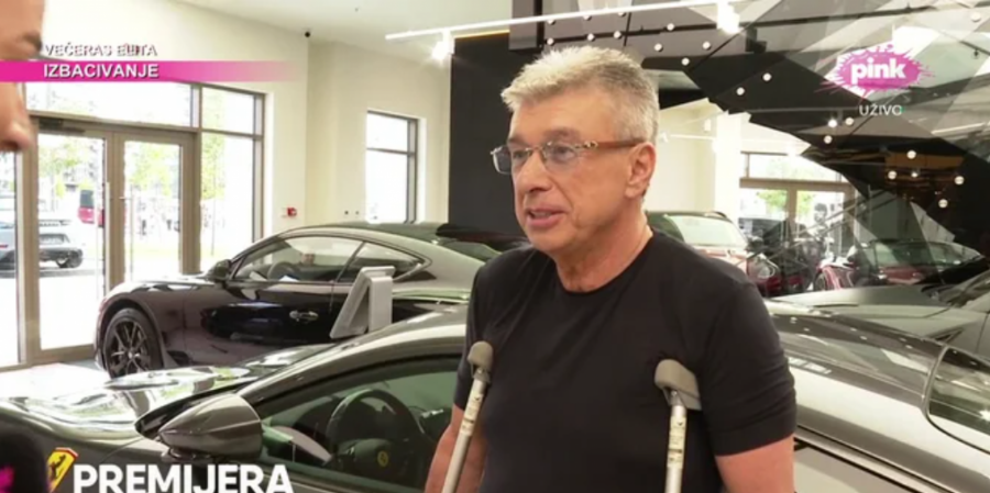 Tada je došao na štakama u emisiju i skoro sve vreme je sedeo u stolici.