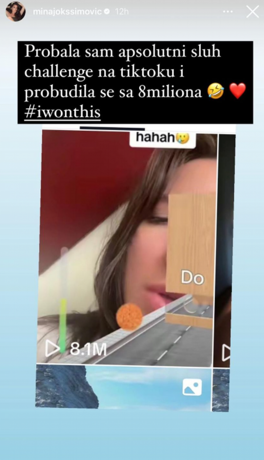- Probala sam apsolutni sluh čelendž na TikToku i probudila se sa 8 miliona - napisala je Joksimovićeva ćerka, a brojka je od tada znatno porasla.
