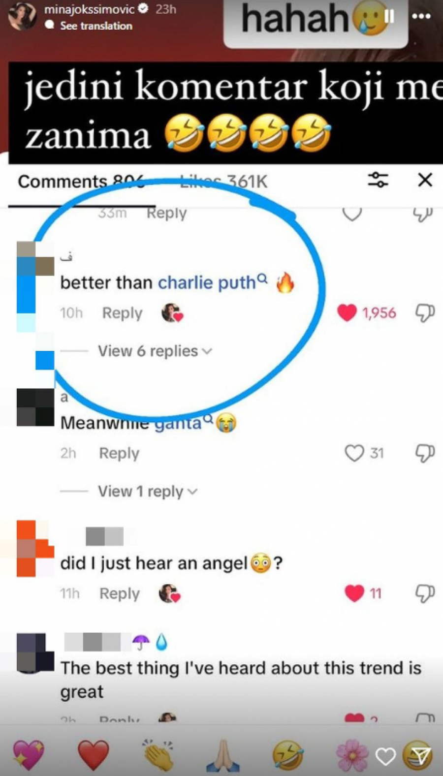 Brojni ljudi širom sveta komentarišu da Mina ima predivan glas, a neki je porede i sa svetski poznatom pevačem, Čarlijem Putom.