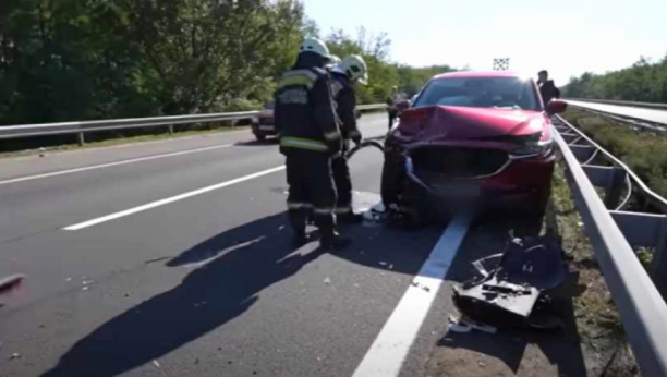Dečko i devojka su krenuli na put, i na autoputu u blizini Budimpešte doživeli su nezgodu, kada su se zakucali u kolonu parkiranih vozila.