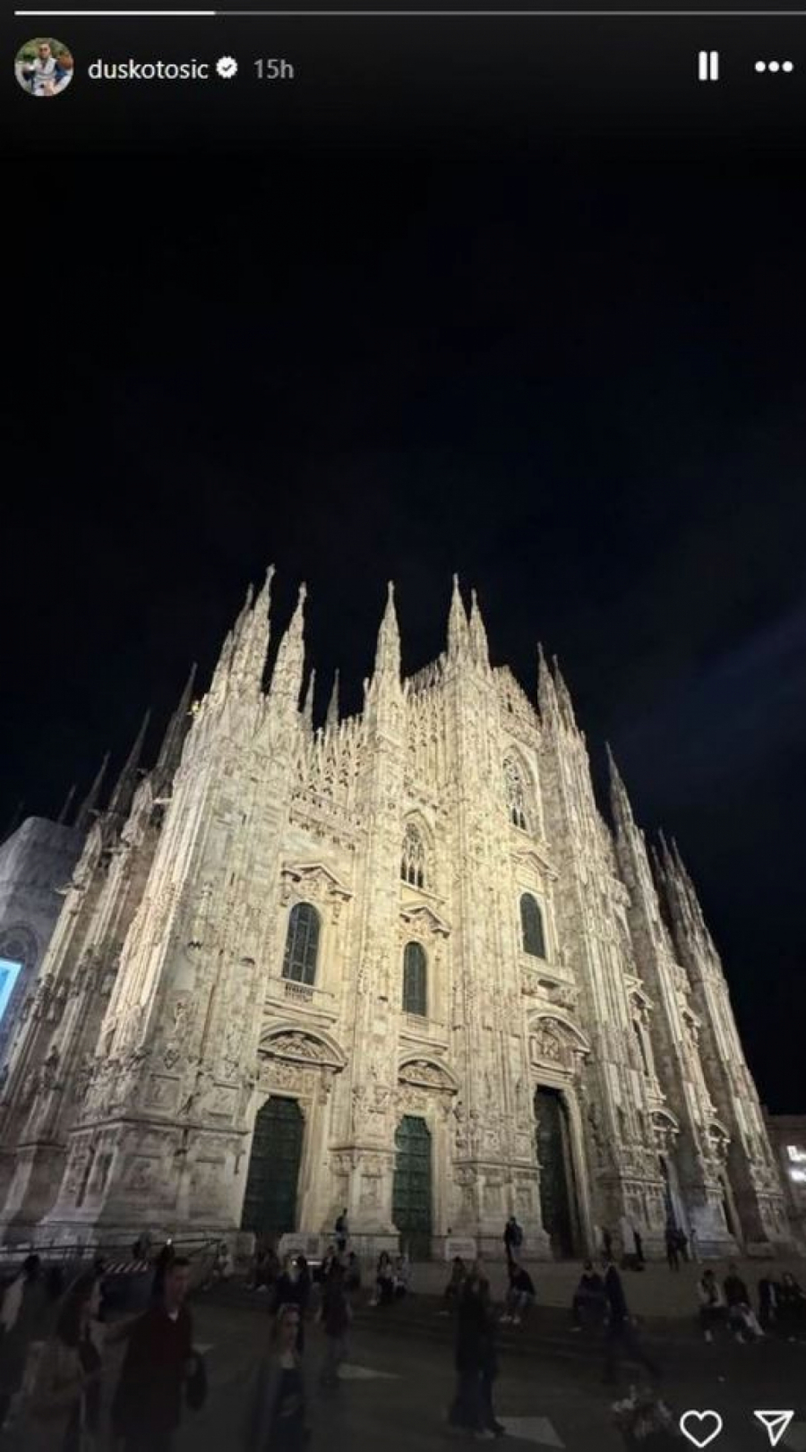 Duško se oglasio iz Milana kasno sinoć, i objavio fotografiju jedne od najlepših znamenitosti u italijanskom gradu, ali ujedno i pokazao da će večeras Zvezdu bodriti sa tribine.