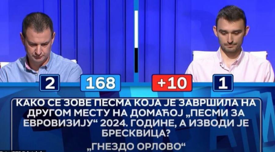 Oba takmičara su se javila da znaju odgovor, a 10 poena otišla su takmičaru koji se prvi javio i tačno odgovorio na pitanje.