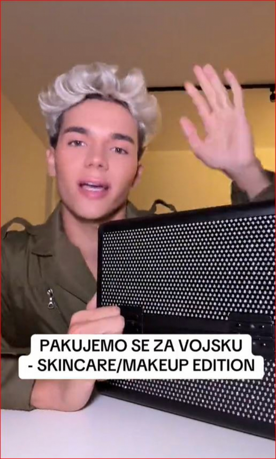 "SRAMOTA, OVO JE ZA PLAKANJE!" Srpski influenser se sprema za vojni rok, pakuje ulje za skidanje šminke, pincetu i lak za kosu!