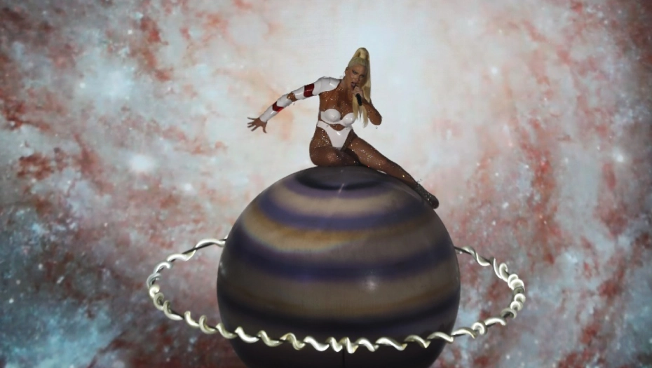Na sceni se pojavila u kombinezonu boje kože, prekrivenom sa skoro 50.000 kristala, koji je savršeno istakao njenu figuru.