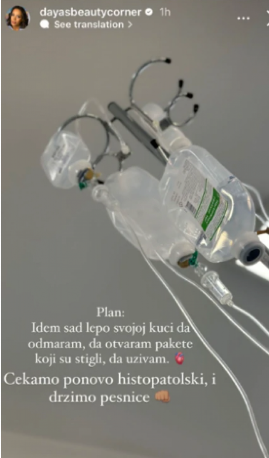 - Idem sad lepo svojoj kući da odmaram, da otvaram pakete koji su stigli, da uživam. Čekamo ponovo histopatološki i držimo pesnice - napisala je ona i dodala: