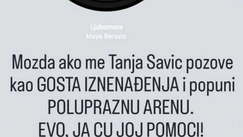 - Možda, ako me Tanja Savić pozove kao gosta iznenađenja, i popuni polupraznu Arenu. Evo, ja ću joj pomoći! Kao ultima ratio.