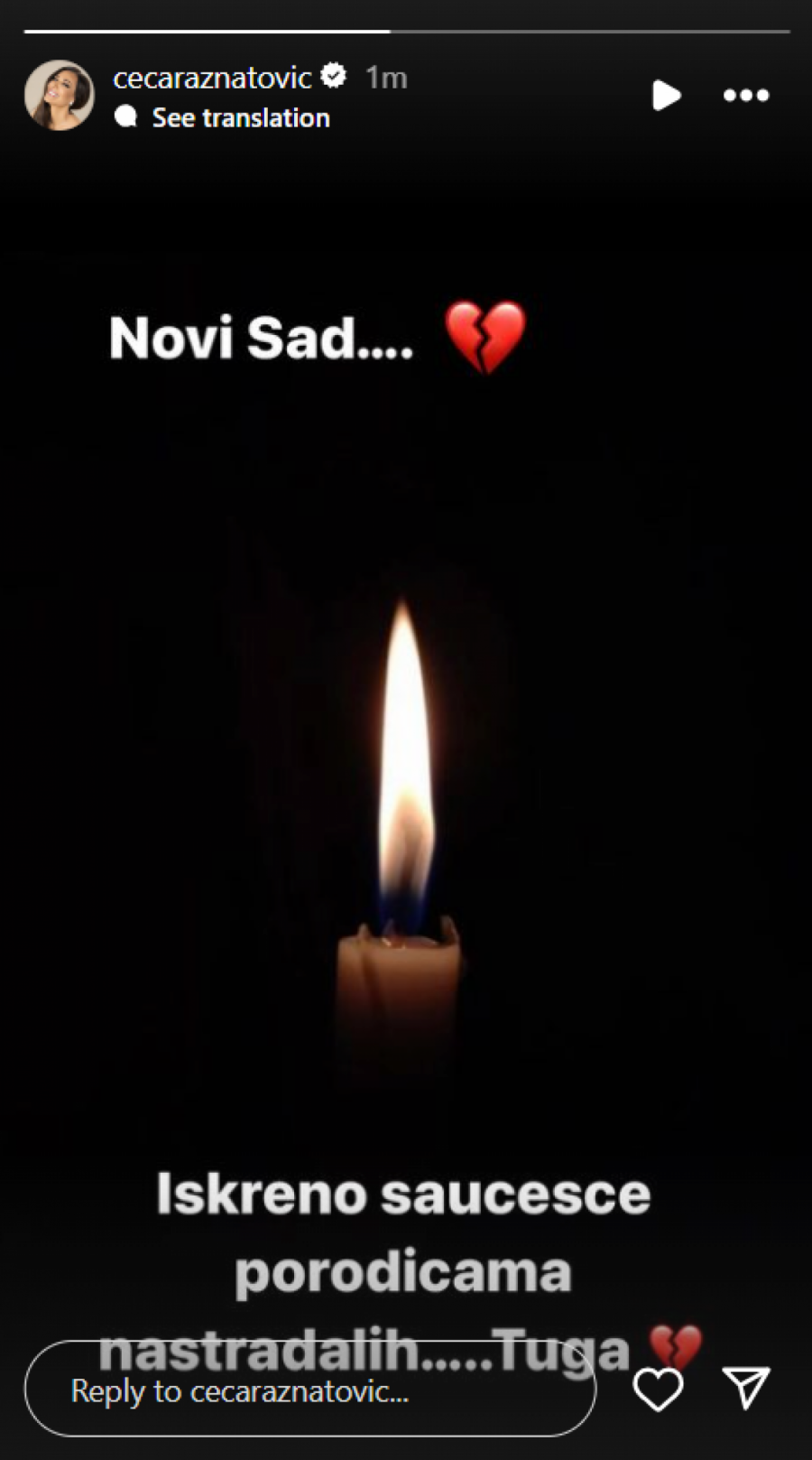 Folk zvezda Svetlana Ceca Ražnatović takođe se oglasila i objavila fotografiju sveće koja gori i današnji datum, a oglasila se i pevačica Edita Aradinović.