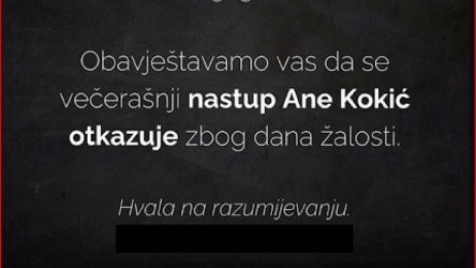 Zbog velike patnje i svega što je zadesilo našu zemlju, Kokićeva je otkazala sinoćni nastup u Podgorici.