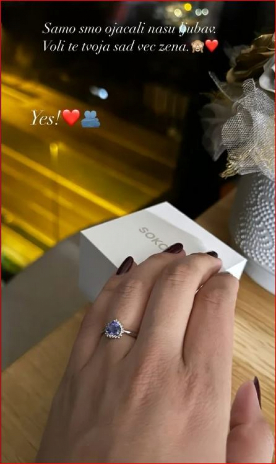 - Samo smo ojačali našu ljubav. Voli te tvoja sada već žena - istakla je Ademova koja mu je rekla „Da“, a veliku pažnju privukao je dijamantski prsten u obliku srca koji je zasijao na njenoj ruci.